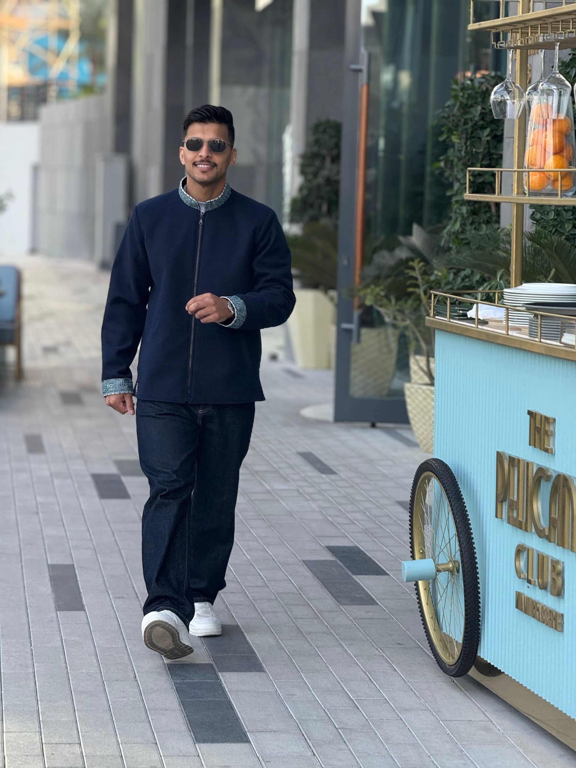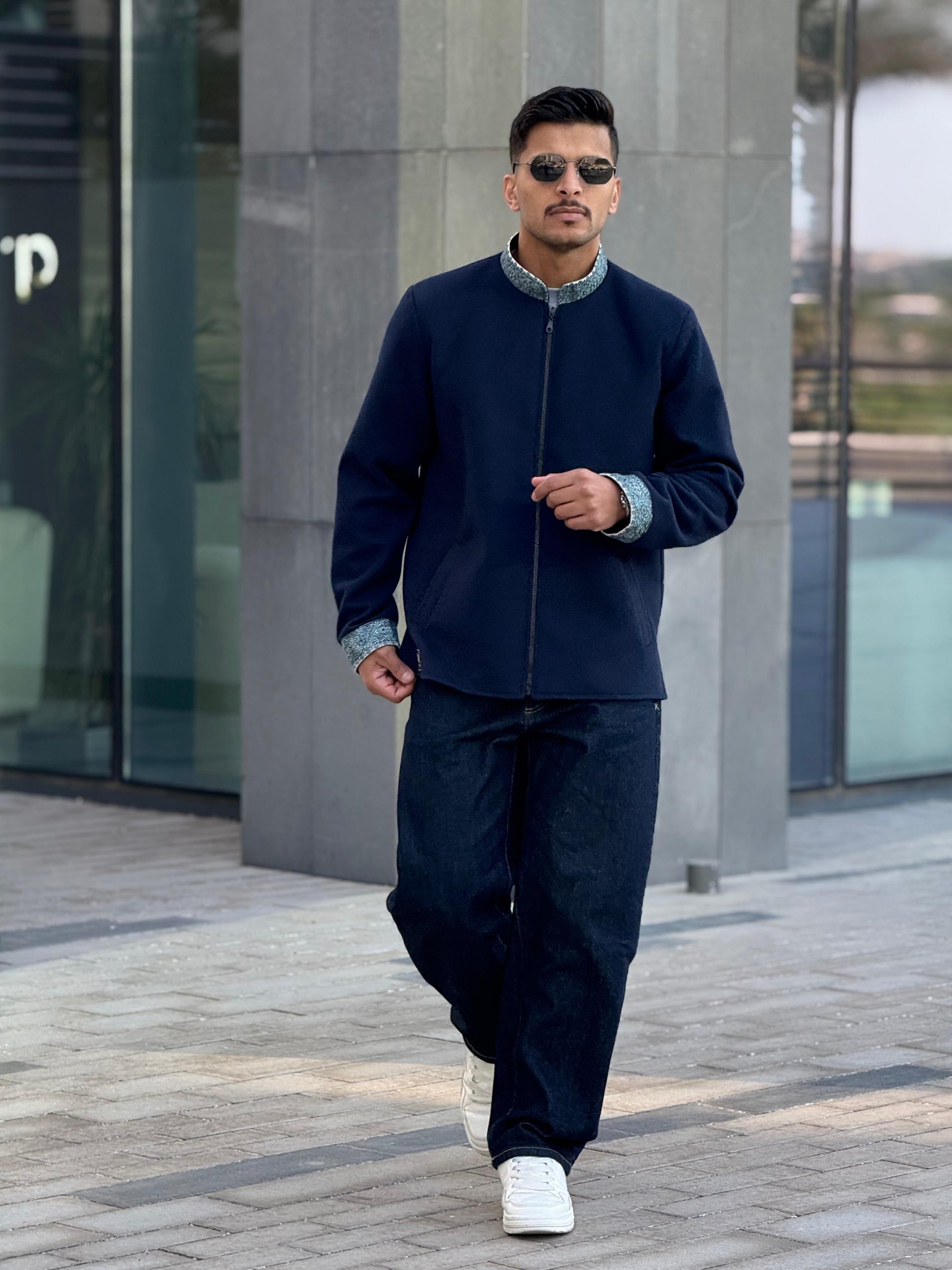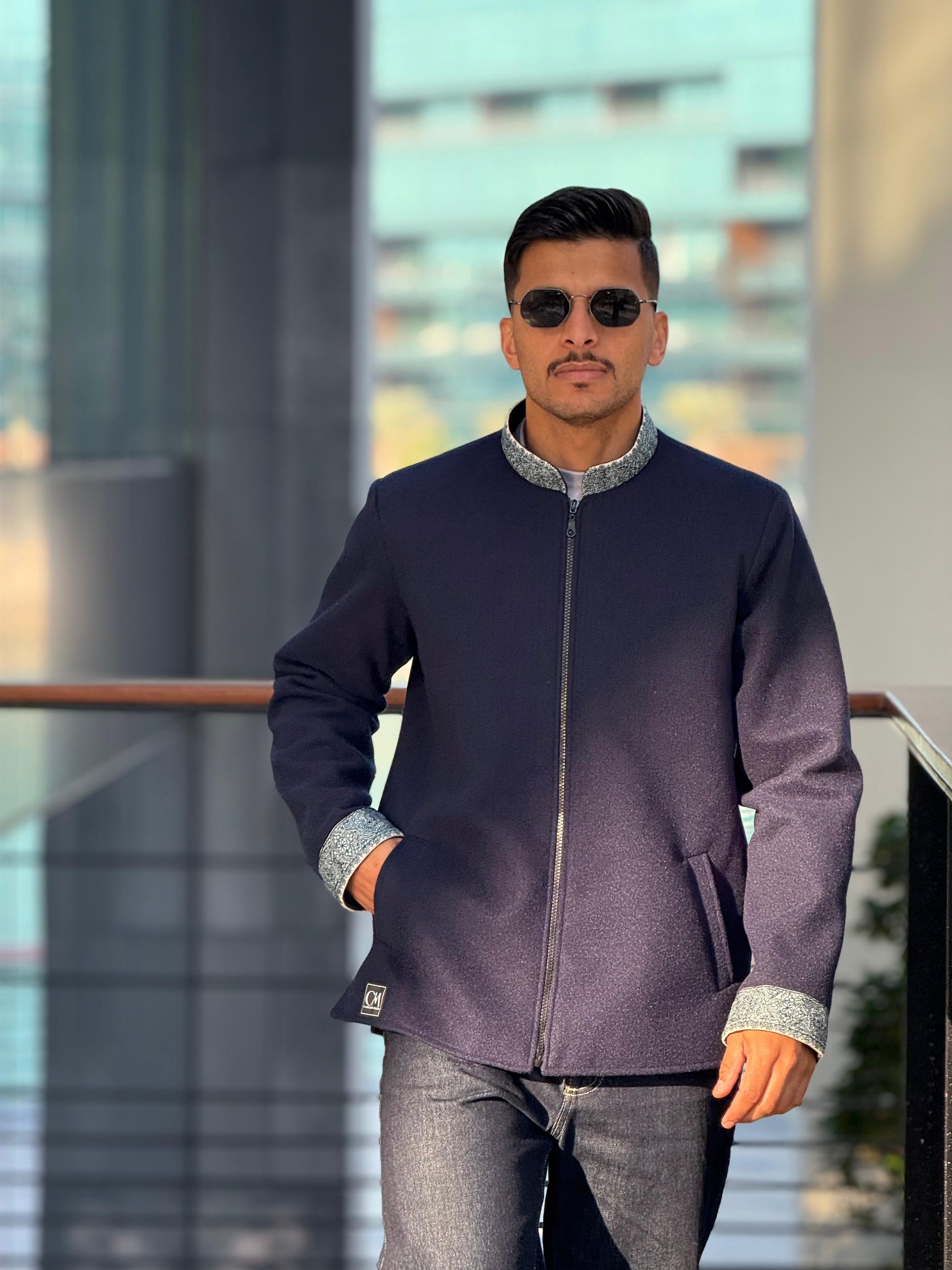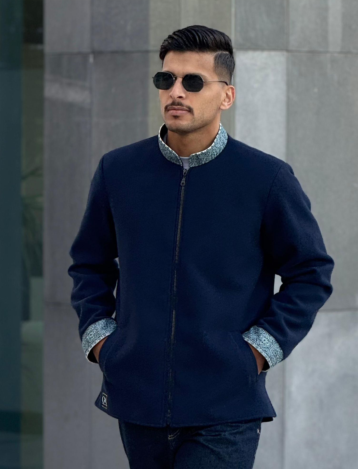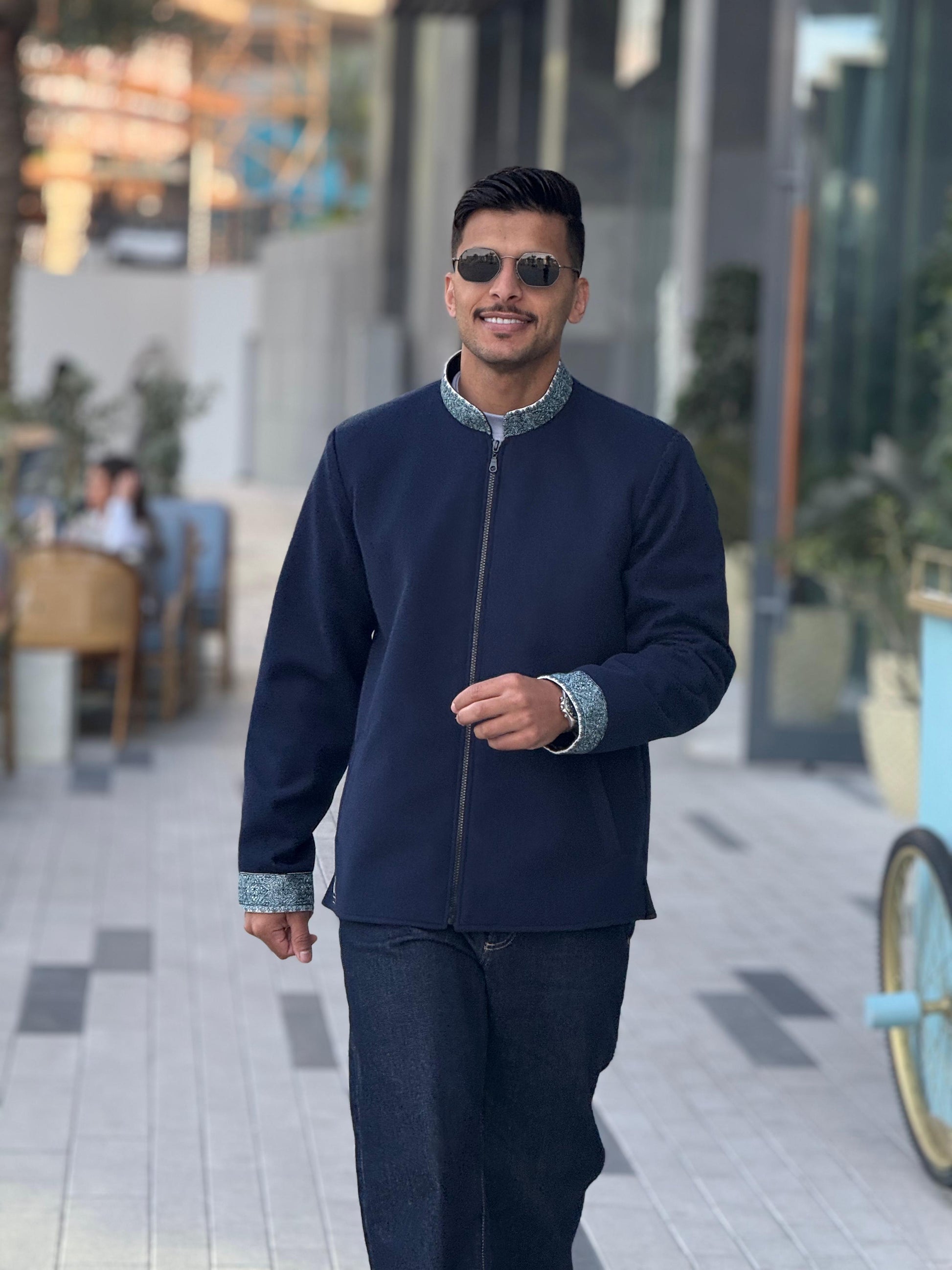 مصنوع من صوف إنجليزي فاخر مع تدخيلات الشال الكشميري في الياقة والأكمام، ليمنحك مظهرًا أنيقًا ولمسة فاخرة تبرز التفاصيل الدقيقة للتصميم.