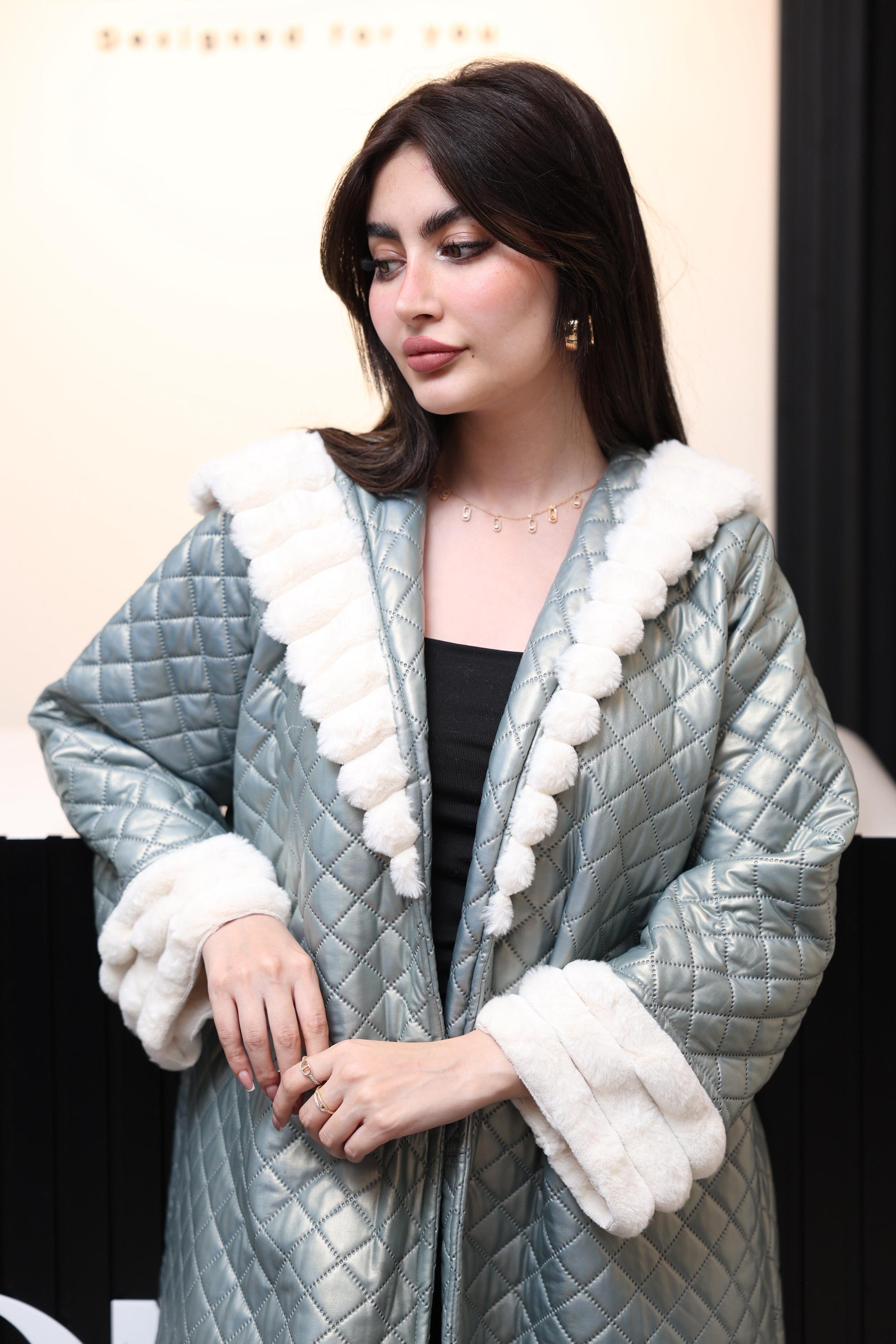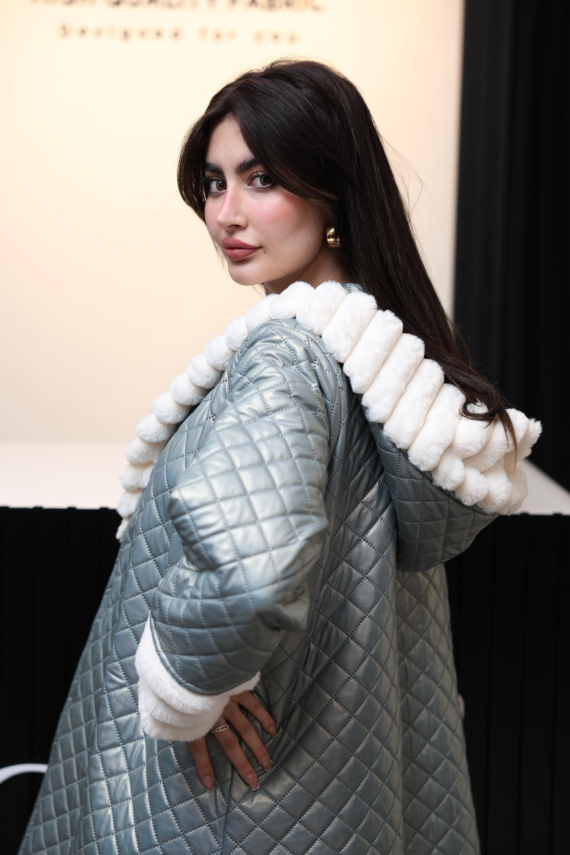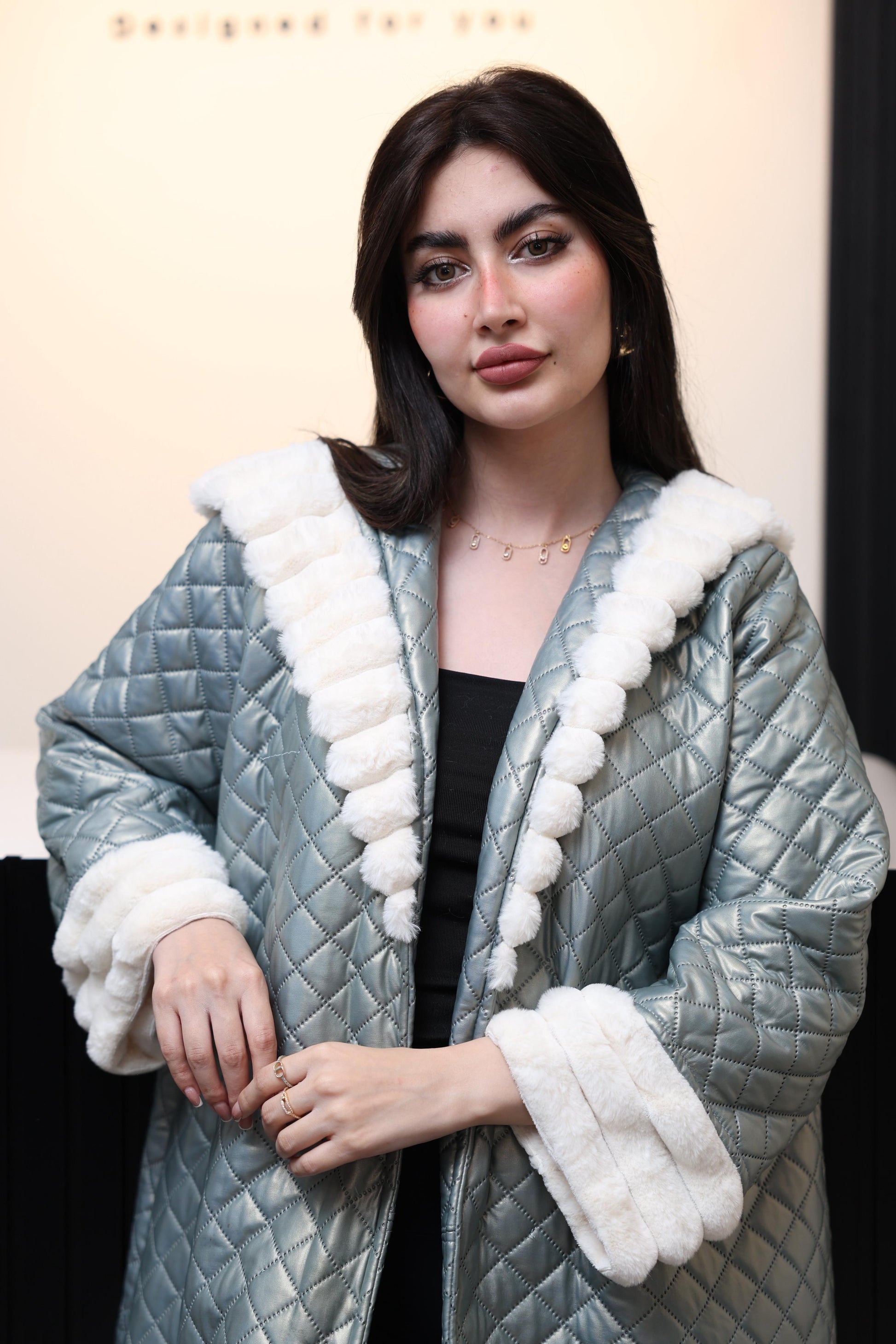 تصميم راقٍ بخامة فخمة عالية الجودة يجمع بين الفخامة والدفء، مزينة بفرو ناعم يضفي لمسة أنثوية فاخرة،وخامة مبطّنة بنقشة عصرية تمنحك إطلالة أنيقة في كل مناسبة.